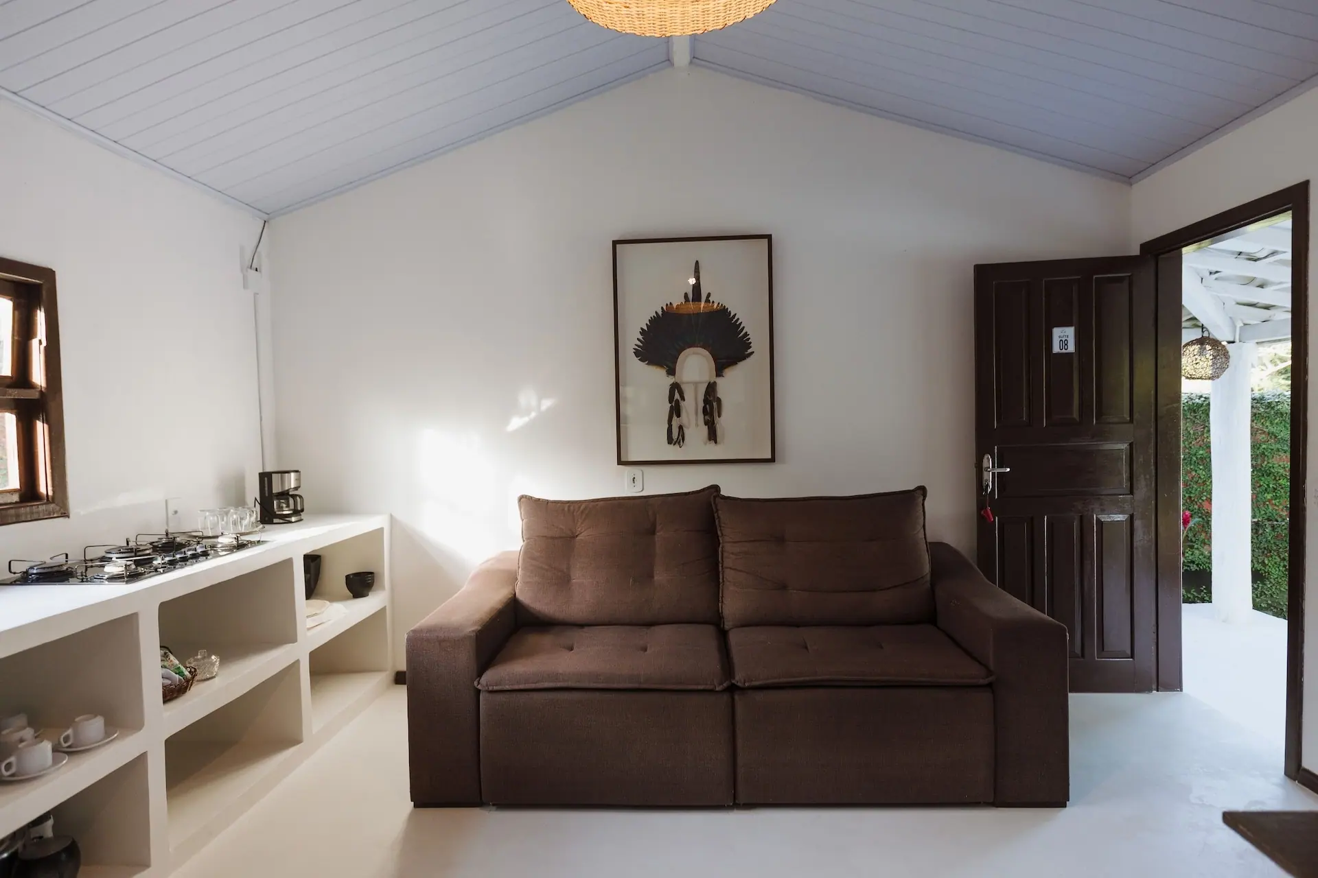 O grande diferencial desta acomodação é a sua configuração inteligente: dois quartos independentes e conjugados, sendo um quarto master com cama de casal e um segundo quarto com duas camas de solteiro. Localizadas tanto no térreo quanto no piso superior, oferecem um refúgio acolhedore funcional em meio à natureza da Bahia