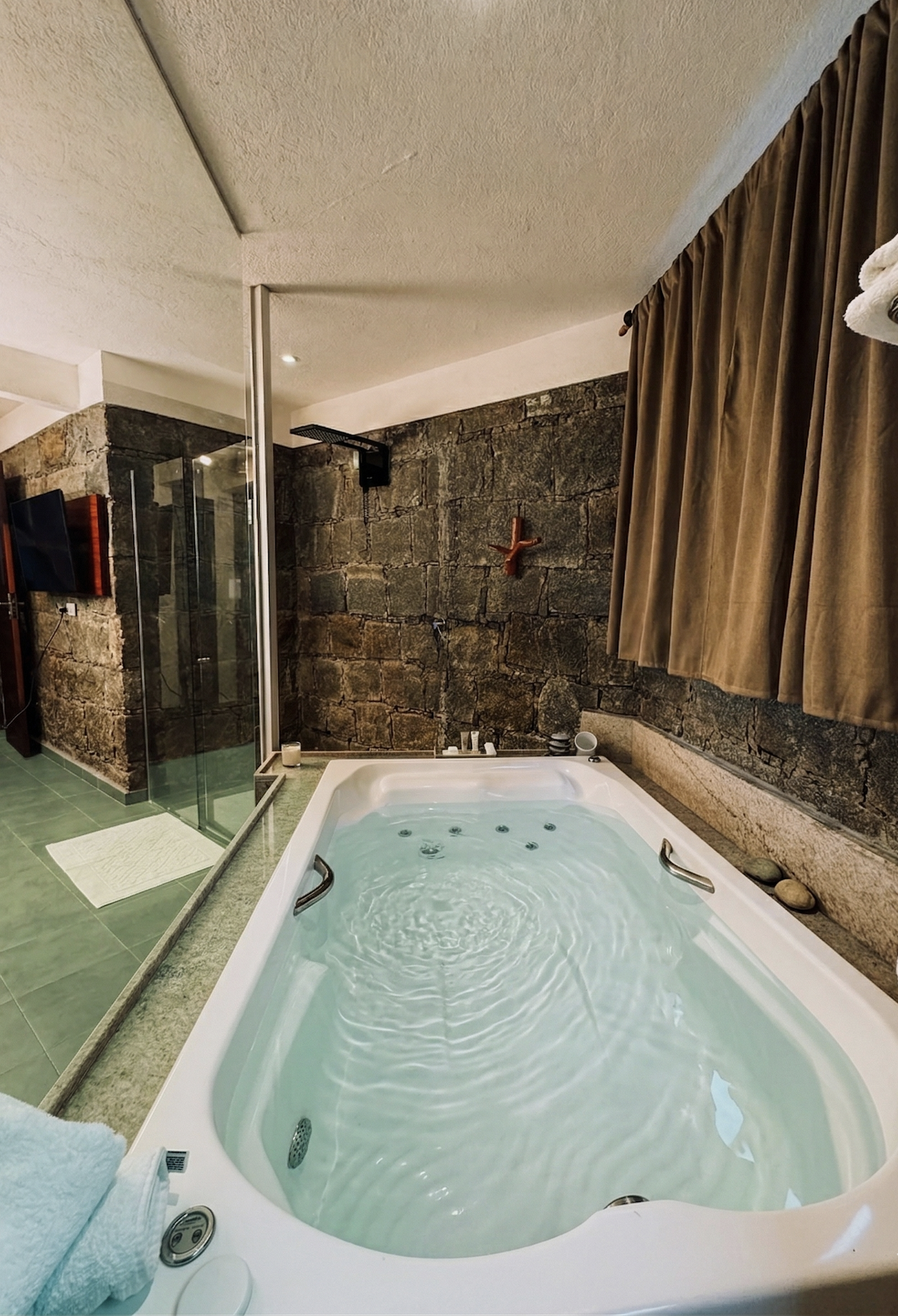 Azorai oferece quatro suítes com hidromassagem, cada uma com seu charme especial, ideais para quem deseja uma experiência de relaxamento profundo em meio à natureza. Equipadas com banheira de hidromassagem com cromoterapia, essas acomodações proporcionam momentos de puro bem-estar.